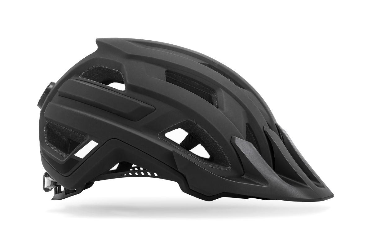 MTB Trail-Helm, zusätzlicher Schutz im Bereich des Hinterkopfes durch tiefgezogene Heckpartie, 18 große Belüftungsöffnungen, optimierte Ventilationskanäle, abnehmbares Visier, einhändig bedienbares und höhenverstellbares SILC 180 Fit System für eine optimale Passform, Double-In-Mould Konstruktion, Flat Divider für die bestmögliche Gurtbandführung, X-Lock Befestigungssystem, herausnehmbare und waschbare Polster, Rastersteckschloss mit Kinnpolster, Natural Fit Konzept, mattes Finish
