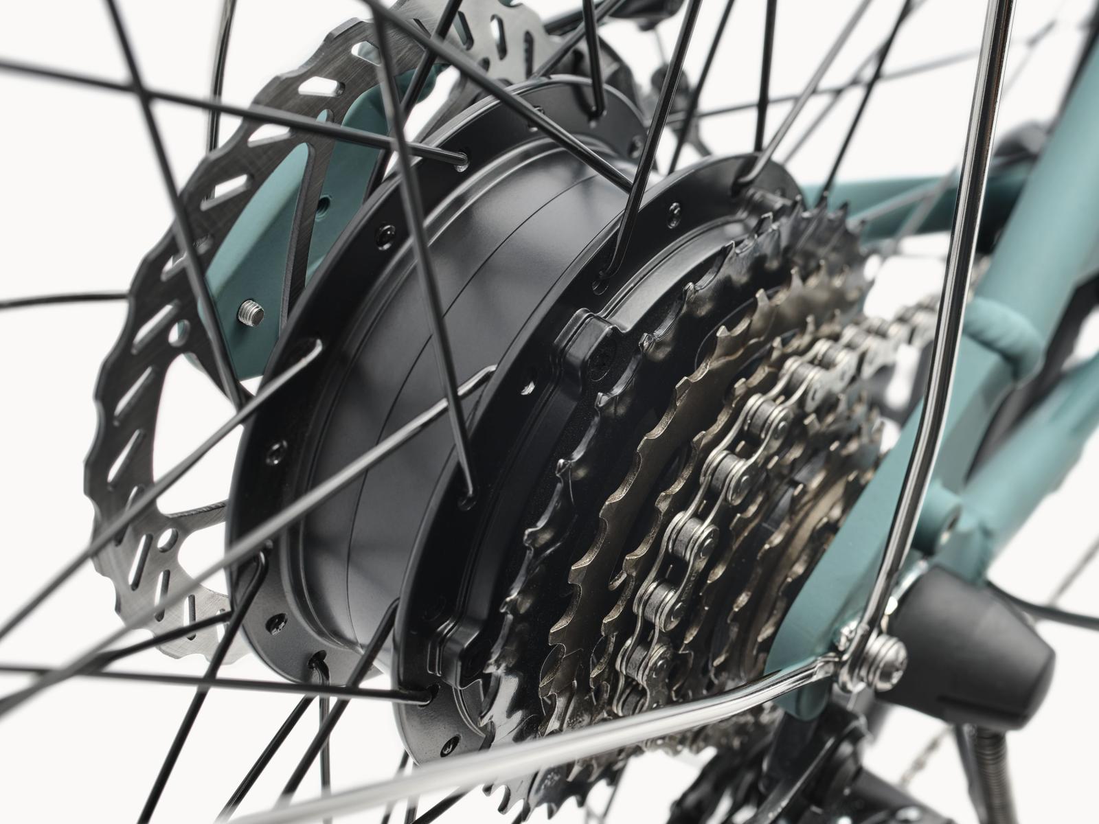 - Dank Hinterradnabenmotor gehst du mit bis zu 25 km/h auf die Reise.