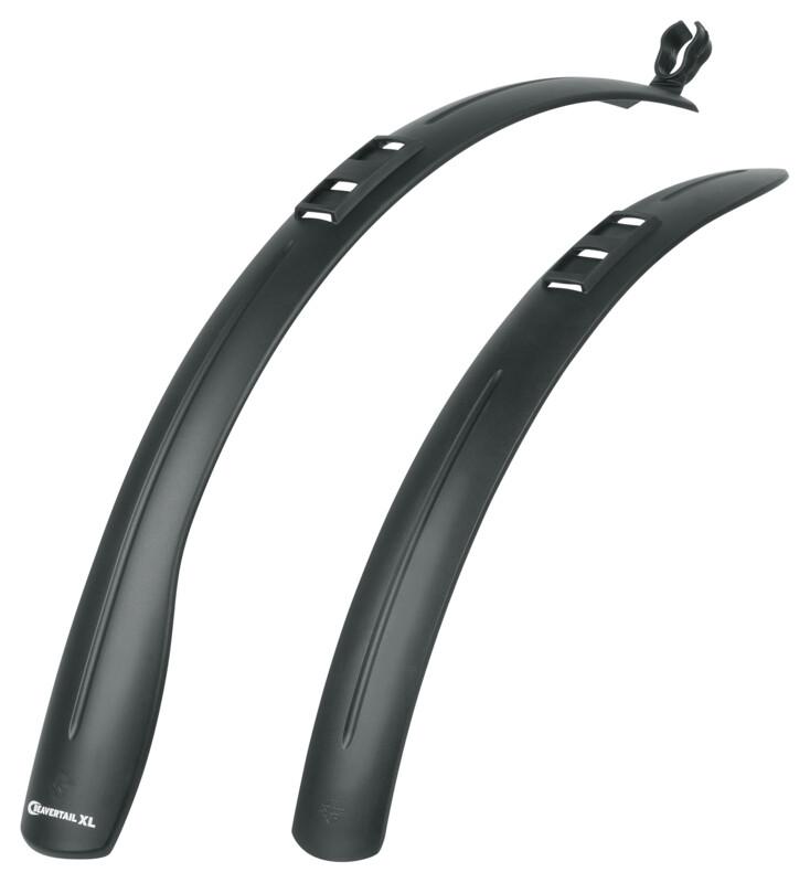 Speziell für Mountainbikes gibt es das SKS Schutzblech-Set BEAVERTAIL auch als XL-Version. Dabei sorgt das innovative Design des Steckradschutzes aus schlagfestem Hochleistungskunststoff für einen optimierten Spritzschutz. Robuste Stahlwinkel garantieren eine einfache und sichere Montage - auch an Federgabeln.