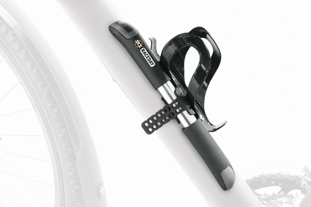 Mit Hochdruck ins Rennen: Die SKS Fahrradpumpe RACEDAY wurde konsequent für den Straßenradsport entwickelt und pumpt bis zu 10 bar. Der Pumpenkopf für SV-Ventile ist komplett vor Staub und Wasser geschützt. Die praktische Griff-Verriegelung sorgt dafür, dass die Pumpe optimal in der mitgelieferten Halterung steckt. Diese kann unter oder anstelle einer Flaschenhalterung montiert werden.