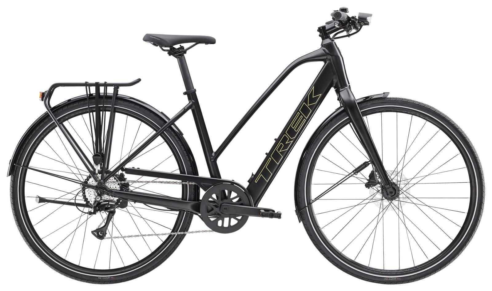 Einen Rahmen samt Gabel aus leichtem Aluminium, Treks proprietäres Antriebsunterstützungssystem von Hyena mit Nabenmotor mit 250 W Leistung und 40 Nm Drehmoment zur Antriebsunterstützung bis 25 km/h und einen 250 Wh starken Akku für bis zu 55 km Reichweite pro Ladung. Außerdem bekommst du schnelle 700C-Laufräder samt rollfreudigen und fahrstabilen 40C-Reifen mit reflektierenden Flanken, eine zuverlässige Shimano-Schaltung mit 8 Gängen, hydraulische Scheibenbremsen, eine integrierte, akkugespeiste Beleuchtung, einen MIK-kompatiblen Heckgepäckträger, Schutzbleche und einen Seitenständer.