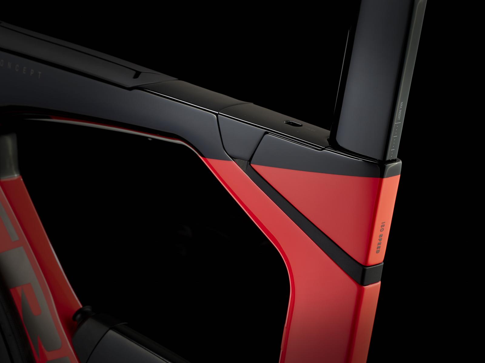 Einen ultraleichten Rahmen aus 800 Series OCLV Carbon, windschnittige Rohre mit Kammtail Virtual Foil-Profil (KVF), eine Speed Concept-Carbongabel mit aerodynamischem Profil, vibrationsdämpfendes IsoSpeed, integrierte Aufbewahrungslösungen für Verpflegung, Flüssigkeit und Pannenkit, einen drahtlosen, elektronischen SRAM Force AXS D2 12fach-Antrieb mit SRAM AXS Clics-Schalthebeln, einen SRAM Force AXS-Powermeter, einen vollständig integrierten Lenker samt Vorbau, einen triathlonspezifischen Bontrager Hilo Comp-Sattel für eine aggressive Aero-Sitzposition, Scheibenbremsen für zuverlässige Bremsleistung und Bontrager Aeolus Pro 51-