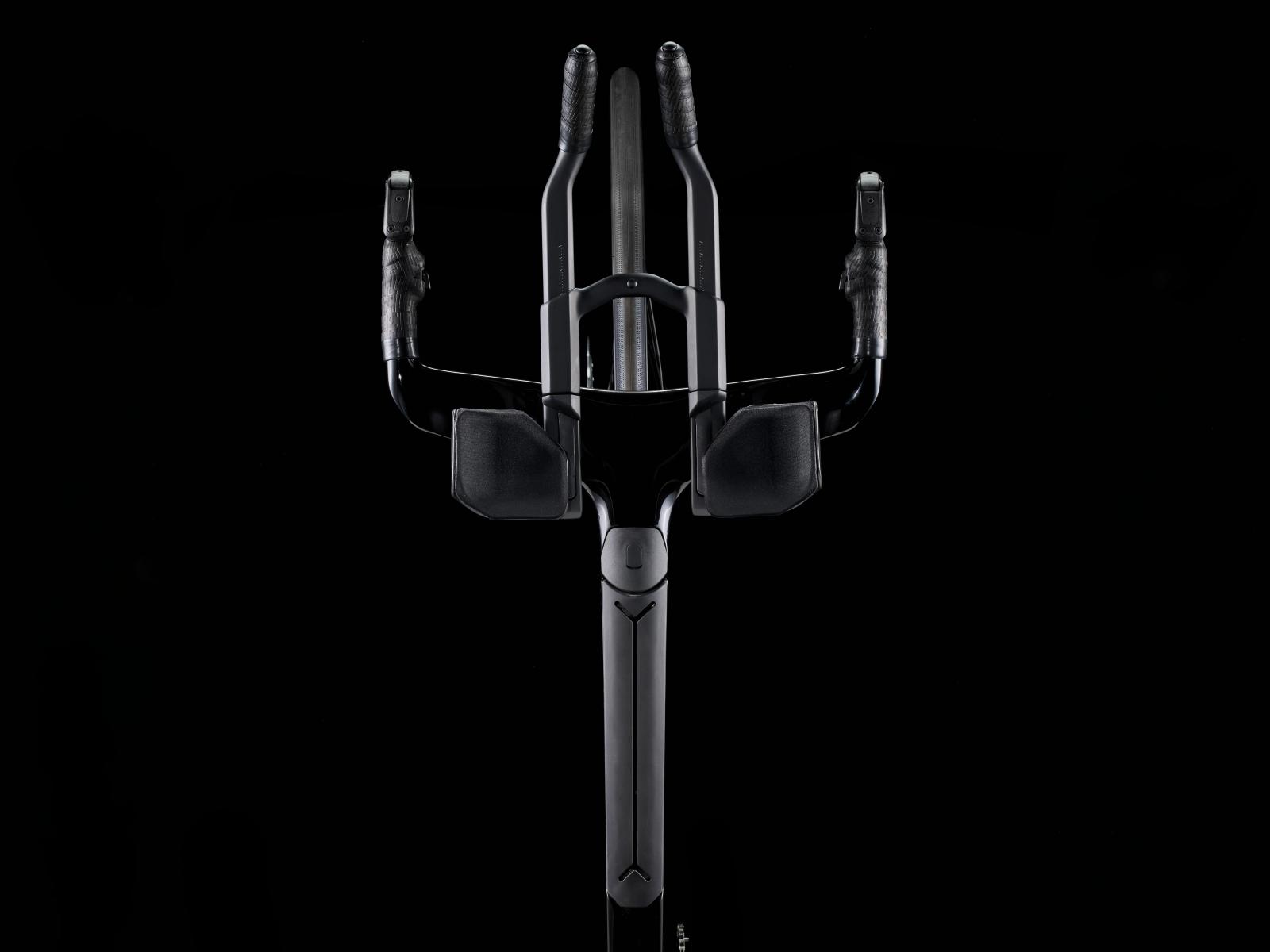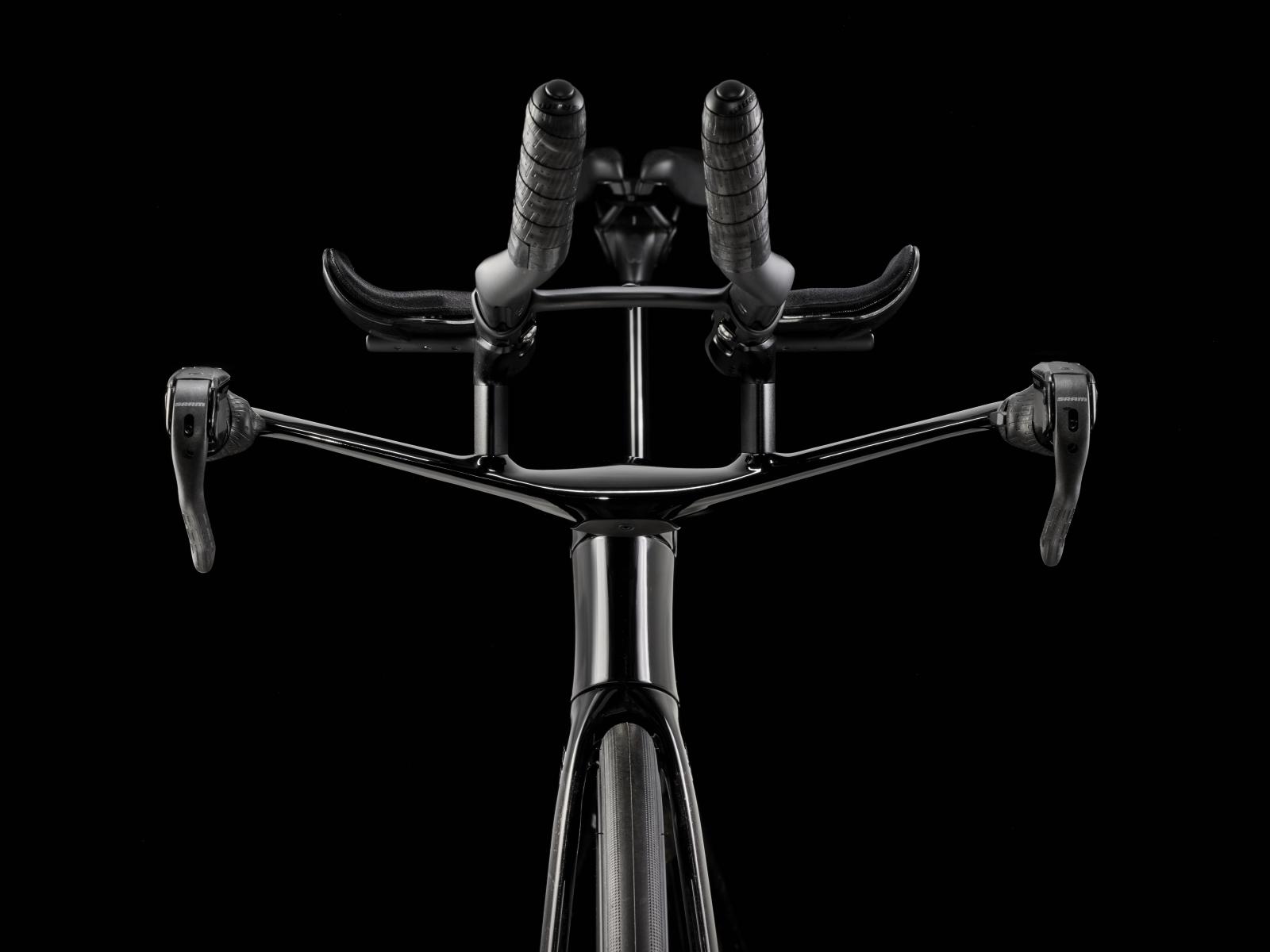 Einen ultraleichten Rahmen aus 800 Series OCLV Carbon, windschnittige Rohre mit Kammtail Virtual Foil Profil (KVF), eine Speed Concept Carbongabel mit aerodynamischem Profil, straßenglättendes IsoSpeed, integrierte Aufbewahrungslösungen für Verpflegung, Flüssigkeitsversorgung und Pannenkit, einen drahtlosen, elektronischen SRAM RED AXS 12fach-Antrieb der vorherigen Generation mit SRAM AXS Blips Schalthebeln, ein SRAM RED AXS Powermeter, eine integrierte Lenker/Vorbau-Einheit, einen triathlonspezifischen Bontrager Hilo Pro Carbonsattel, zuverlässige Scheibenbremsen und aerodynamische Bontrager Aeolus Pro 51 Laufräder aus OCLV Car