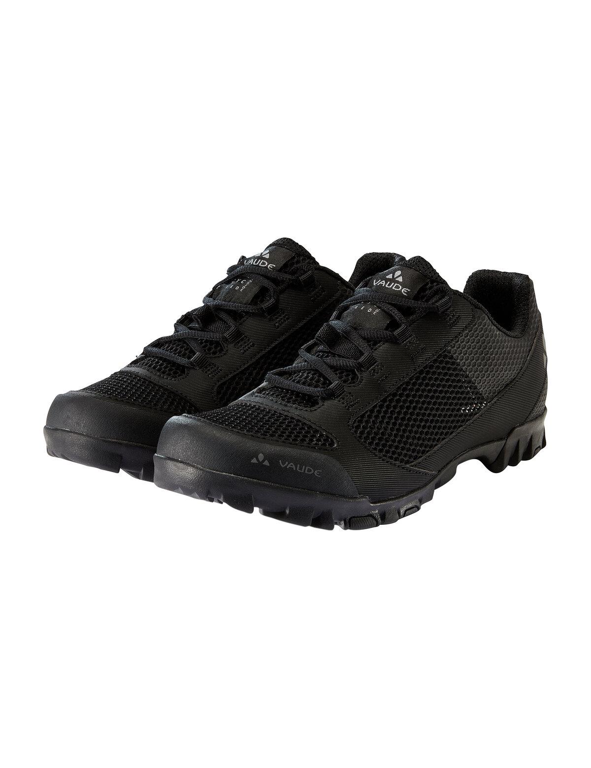 Heiß, heiß, heiß? Mit diesem wunderbar luftigen Fahrradschuh können die schweißtreibenden Sommertage kommen. Der besonders atmungsaktive und cool aussehende Bikeschuh ist die ideale Besetzung, wenn die Temperaturen ganz nach oben klettern. Das luftige Meshmaterial ist zu 100 % aus recyceltem Polyester gefertigt und ist strapazierfähig und robust, bietet eine hohe Stabilität und dehnt sich nicht beim Tritt in die Pedale. Im Bereich des Knöchels ist das Material für mehr Komfort verstärkt; außerdem sorgen die vorgeformten Zehen- und Fersenkappen für zusätzlichen Abriebschutz. Die Schnürsenkel können unter den Lace Bungees - elastischen Gummilaschen - sicher fixiert werden, damit sie sich nicht in der Kette verfangen. Die SUPtraction® R20 Sohle aus 20 % recyceltem Gummi verfügt über eine abnehmbare Cleatabdeckung, mit der der Schuh mit wenigen Handgriffen in einen Klickpedal-Schuh umgerüstet werden kann. Durch die mittlere Steifigkeit (V-Flow 5) hat sie aber auch einen hohen Gehkomfort bei gleichzeitig effizienter Kraftübertragung auf dem Pedal. Das VAUDE Green Shape-Label steht für ein umweltfreundliches, funktionelles Produkt aus nachhaltigen Materialien.