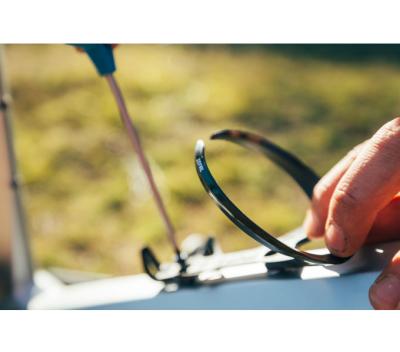 Gebinde/Inhalt: 1 Flaschenhalter, 2 Befestigungsschrauben aus anodisiertem Aluminium